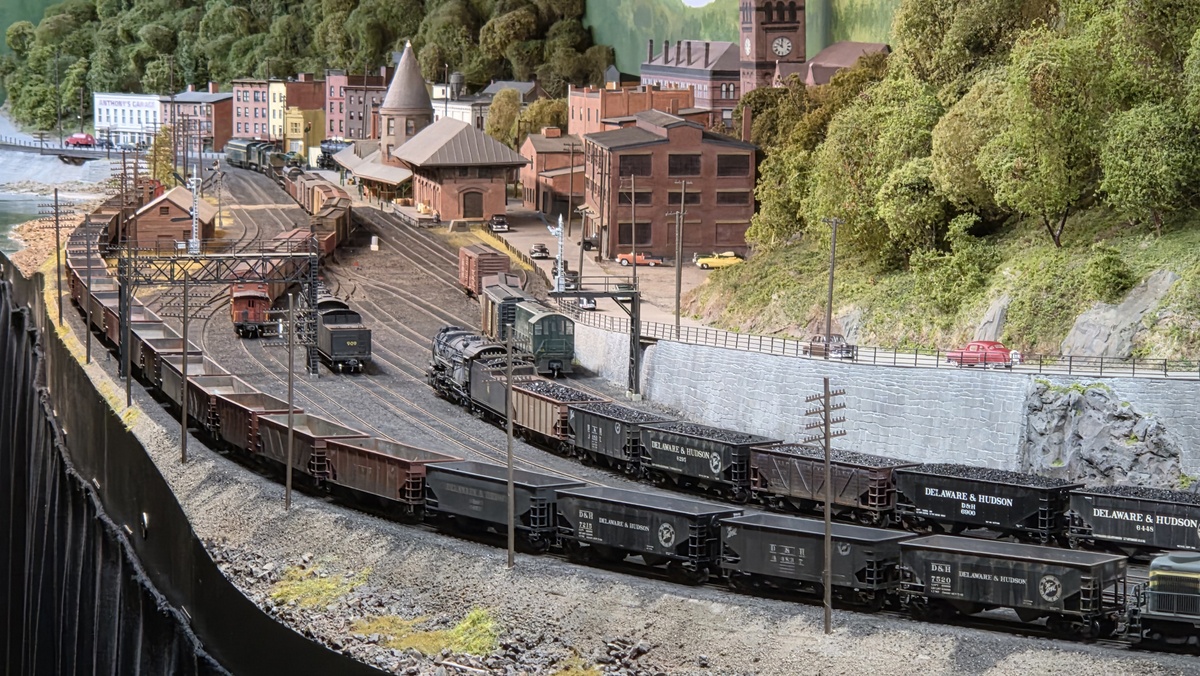 This time the work on Mauch Chunk took place a good while ahead and the layout was dismantled a week ahead of the show ready to pack – much less stressful. New etched fencing to the road at the west end of the layout, rebuilt fences along the trackside (now more to scale), many more trees and many new telegraph poles were the main scenic changes.
